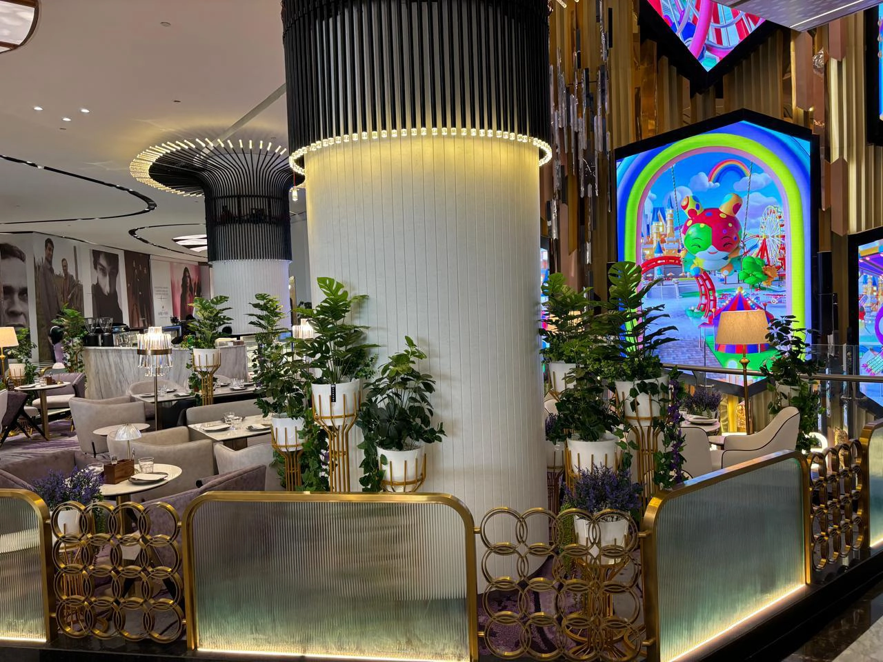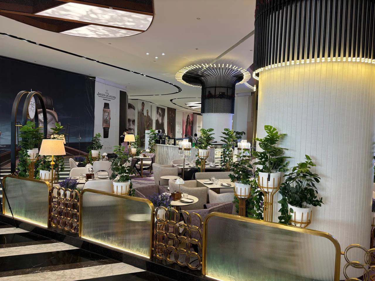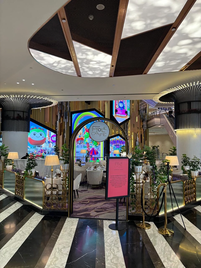 The ambiance at Fyole Cafe in Phoenix Mall of Asia is defined by a modern, minimalist aesthetic with a signature purple-themed interior. Designed to transport guests to an "enchanted European countryside," the space features a sophisticated blend of gold accents and marble finishes.