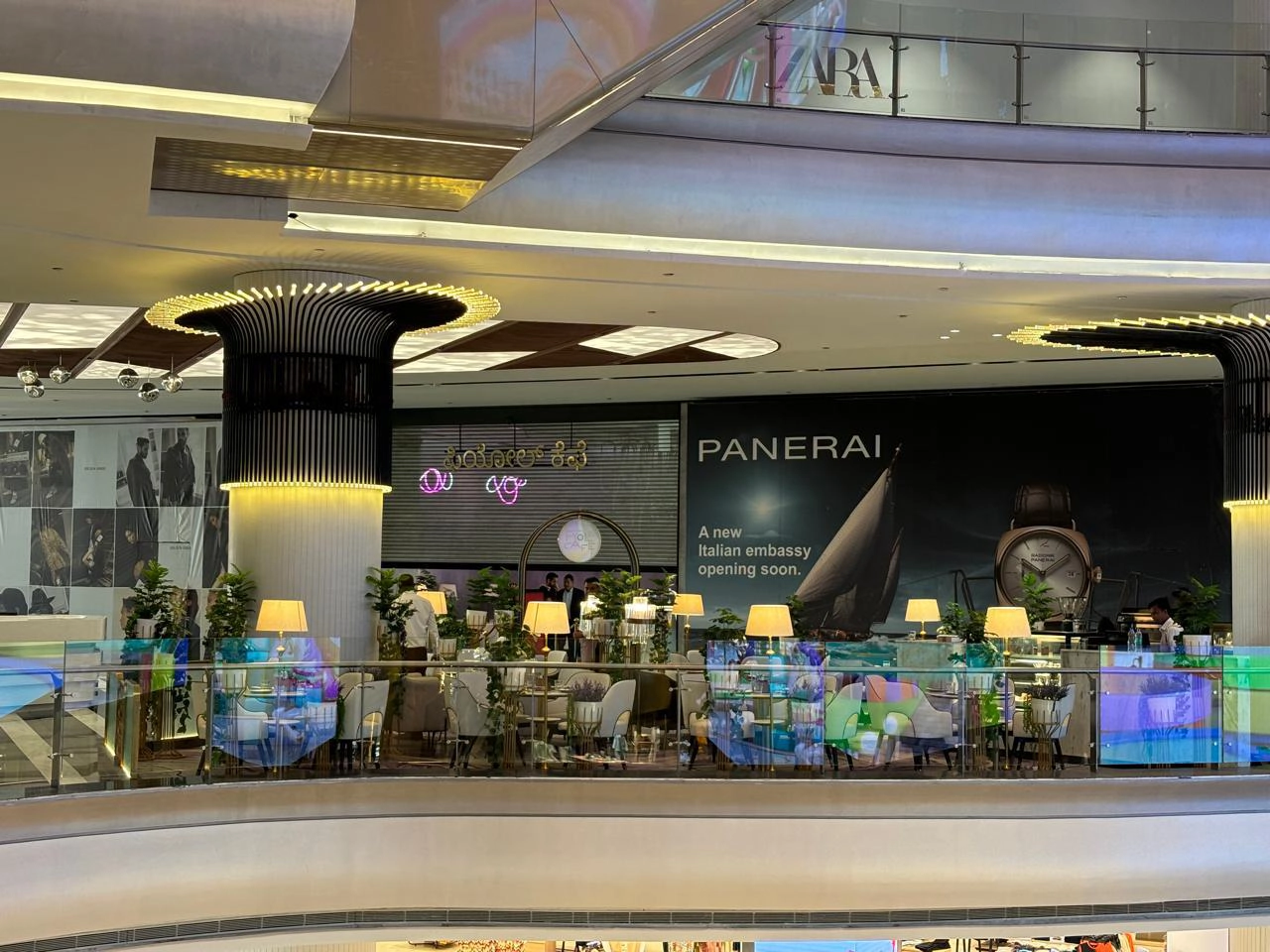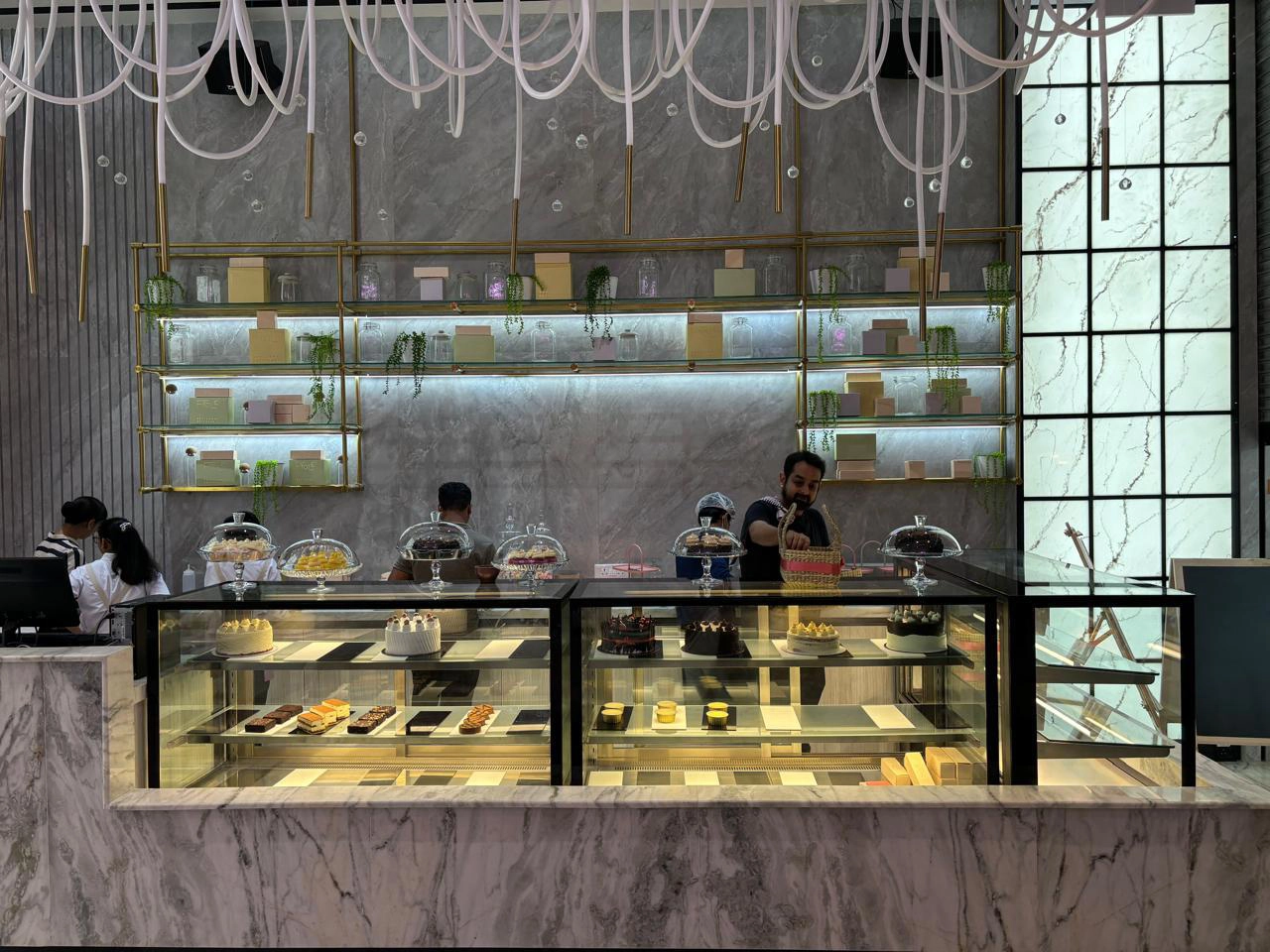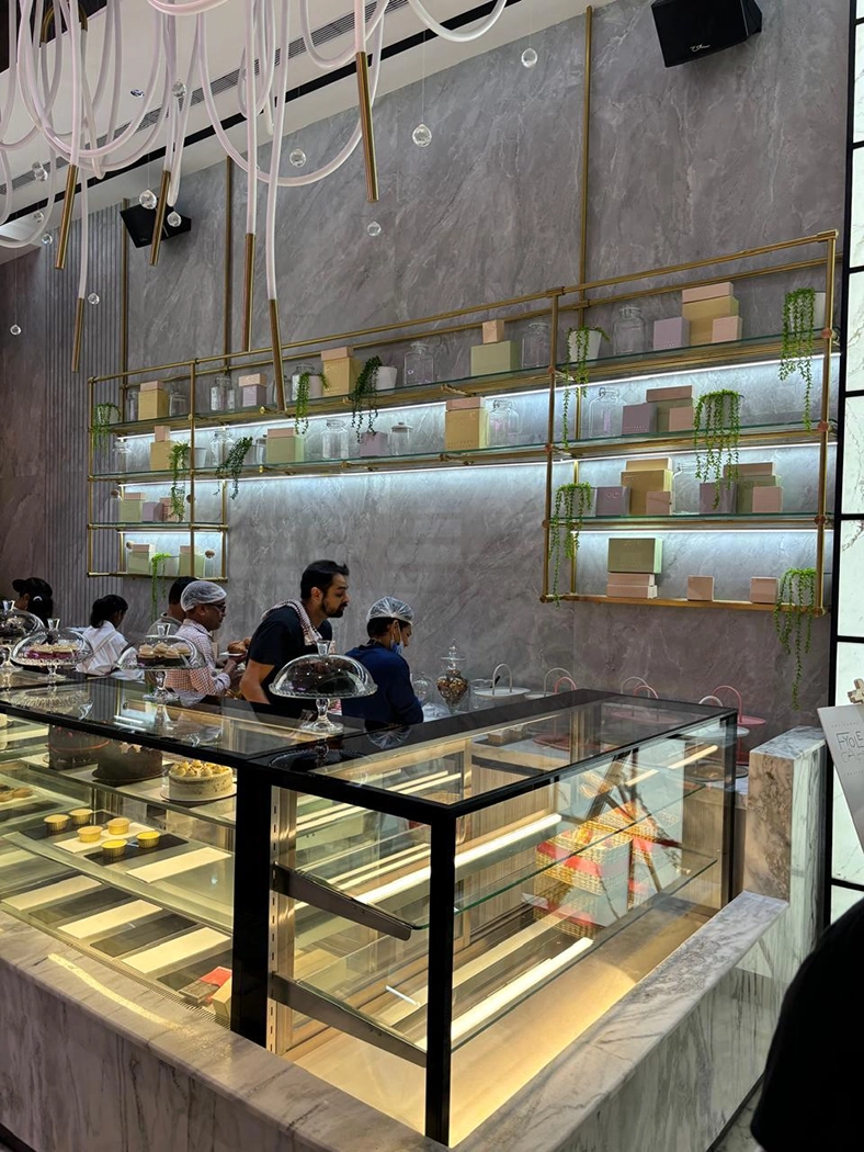 The ambiance at Fyole Cafe in Phoenix Mall of Asia is defined by a modern, minimalist aesthetic with a signature purple-themed interior. Designed to transport guests to an "enchanted European countryside," the space features a sophisticated blend of gold accents and marble finishes.